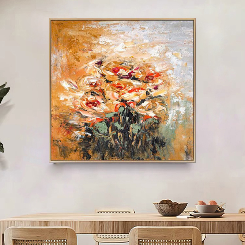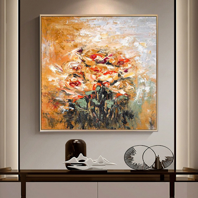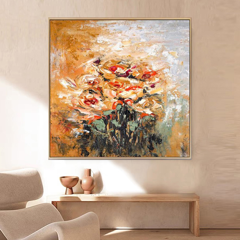 Tranh hoa hồng nghệ thuật sơn dầu hiện đại với gam màu cam vàng ấm áp, tạo điểm nhấn tinh tế và nổi bật cho không gian sống. Tác phẩm được chế tác thủ công từ chất liệu sơn dầu cao cấp, mang lại độ bền màu, chiều sâu và sự sang trọng cho từng chi tiết. Phong cách nghệ thuật hiện đại pha trừu tượng giúp bức tranh dễ dàng kết hợp trong nhiều không gian: phòng khách, phòng ăn, phòng ngủ, văn phòng hoặc quán café. Đây là lựa chọn lý tưởng để nâng tầm giá trị thẩm mỹ và tạo cảm giác thư giãn, gần gũi.